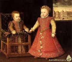 Babies in the Renaissance had virtually no freedom of movement. Parents wrapped their children in constricting swaddling clothes. They would tie the infant to a cradleboard or carrycot to keep the babies warm or to help limbs to grow straight. Babies also wore corsets called "stays." Young children wore a pudding cap with padding around the forehead in order to act as cushion for the infant's head. Children also usually wore snug fabric biggins caps. Girl and boy toddlers wore gowns with long sleeves. Toddler’s garments often had leading strings attached to the shoulders so that adults would be able to guide children as they learned to walk.